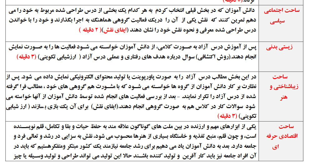 طرح درس تمام ساحتی ملی درس۱۳ درس آزاد فارسی سوم