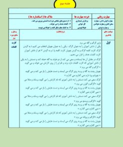 در ادامـه، این شـرکتکننـده برای هر ساحت مثالها و نمونههای متعددی از کتـابهای درسی ذکر کرد.