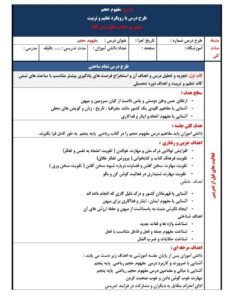 داده های پژوهش حاصل از تحلیل طرح درس اول