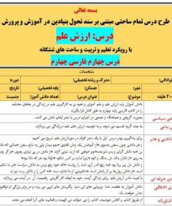 طرح درس تمام ساحتی ارزش علم فارسی چهارم