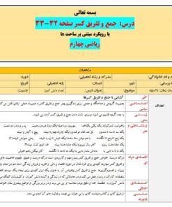 طرح درس تمام ساحتی جمع و تفریق کسر صفحه ۳۲-۳۳ ریاضی چهارم